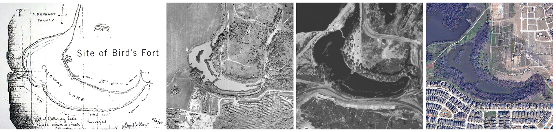 J. J. Goodfellow visited the site of Bird's Fort on several occasions, including two occasions on which he conducted official surveys on the land. Over the course of his career, Goodfellow became somewhat of a de facto authority on the layout of the Bird's Fort site, producing numerous letters and diagrams describing and illustrating the locations of fort remnants that remained during his visits, as well as those remnants' previous locations after all vestiges of them had been obliterated by time. Thanks to Goodfellow's work and recorded observations, we can plot with reasonable accuracy where the blockhouse, the spring, and the graveyard stood in relation to Calloway Lake when Bird's Fort was extant.